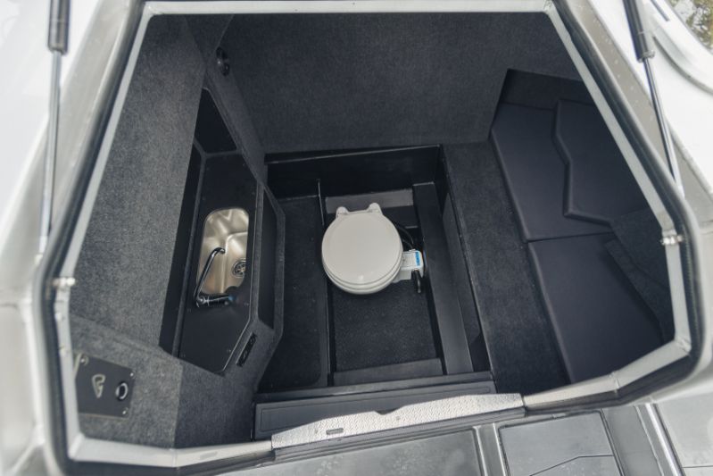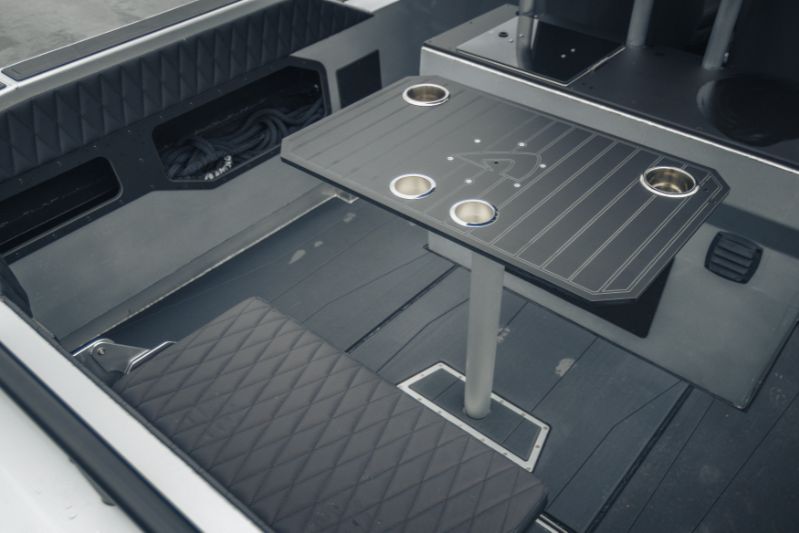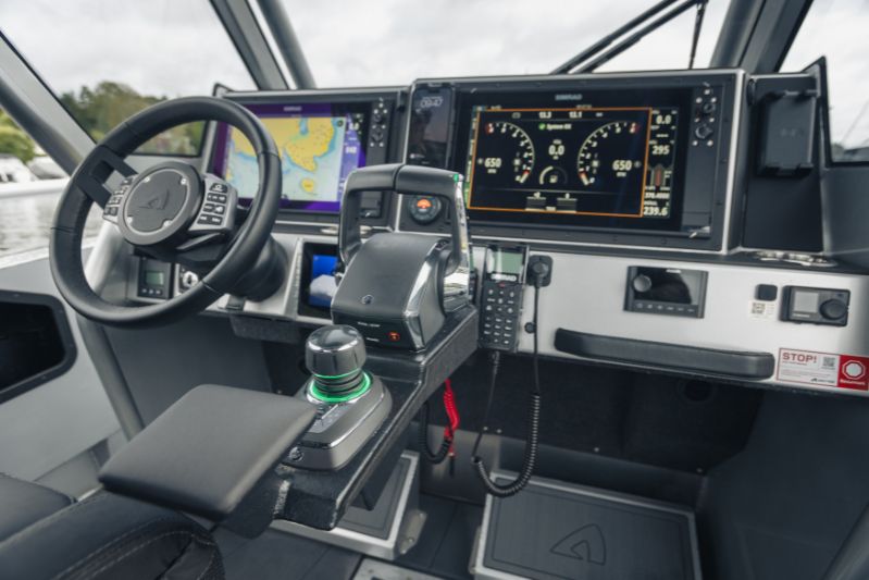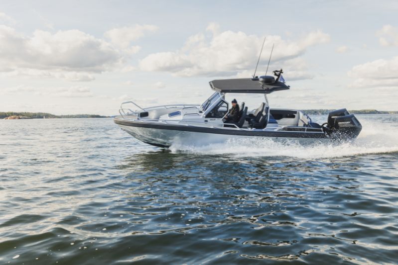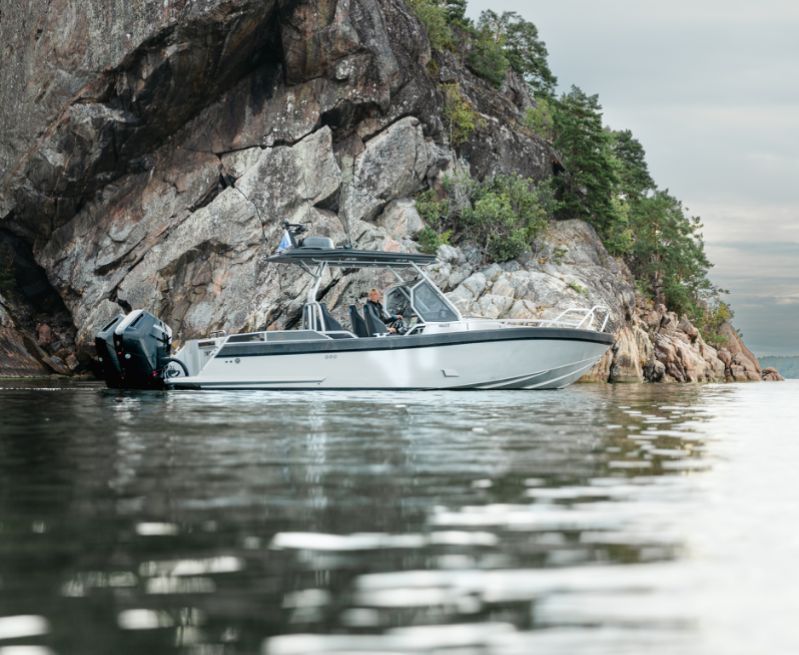 860 T är kanske den tuffaste av trion. Speciellt med sina dubbla Mercury V10-utombordare på 400 hästkrafter och svartmålade T-top-tak utstrålar den en känsla av äventyr och maskulinitet. Och utseendet ljuger inte.