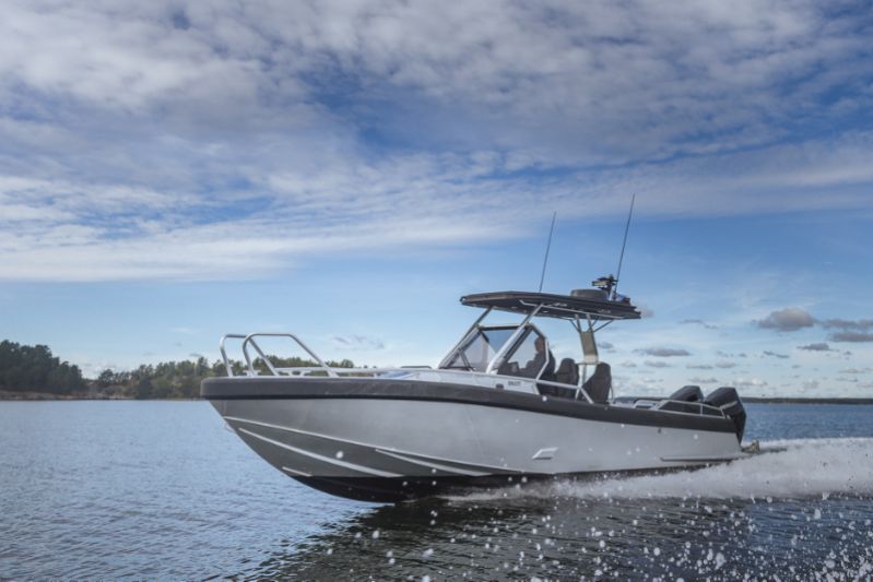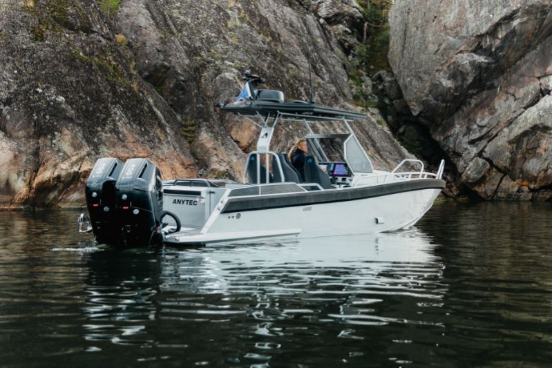 När det gäller Anytec är prestandan också en fröjd i praktiken, eftersom köregenskaperna och förarplats är sådana att du kan bibehålla hastigheten utan att offra komforten, även i avsevärt tufft väder. I kategorin båtar under 10 meter är Anytec 860 T definitivt en av de snabbaste vattenfarkosterna. I 860 T har Anytec djärvt kombinerat en heltäckande aluminiumkonstruktion med den trendiga T-top-lösningen för walk-around-utrymmen.